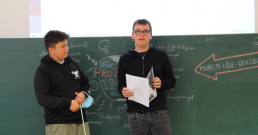 Zum Schluss trug jede Gruppe ihre Gedankengänge und Lösungsvorschläge vor der Videokamera vor.