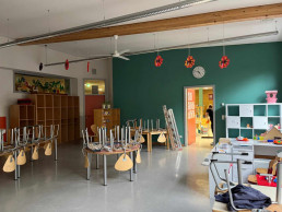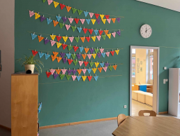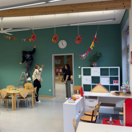 Nun gehen wir fröhlich in unsere selbst gestalteten Räume und auch die Kinder kamen aus dem Staunen nicht mehr heraus. Ein großes Dankeschön an alle fleißigen Helfer und großzügigen Sponsoren für dieses farbenfrohe Wunder!
