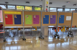 Den Auftakt bildete die Präsentation der Wahlplakate in der Pausenhalle. Die Kandidatinnen und Kandidaten für das Amt der Schülersprecherin bzw. des Schülersprechers gestalteten kreative und aussagekräftige Plakate, die bei den Schülerinnen und Schülern auf großes Interesse stießen und aufmerksam betrachtet wurden.