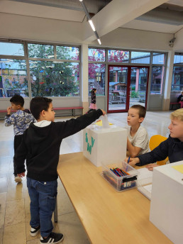 Der Wahltag bildete den Höhepunkt der Woche. Nach den Grundsätzen demokratischer Wahlen gaben alle Schülerinnen und Schüler ihre Stimme ab – geheim, in Wahlkabinen und mit offiziellen Wahlzetteln. Die Spannung war groß, und am Ende des Tages standen die neuen Schülersprecherinnen und Schülersprecher fest: