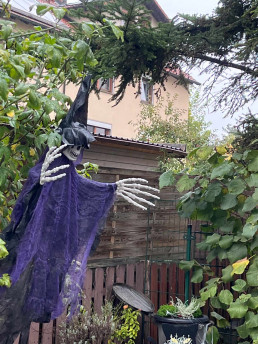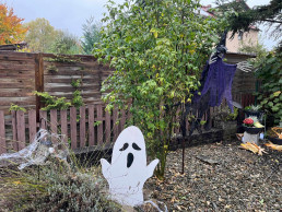 Der Heimweg führte vorbei an gruselig geschmückten Halloweenhäusern, bei denen selbst die tapfersten Steppkes kurzzeitig ihre Coolness gegen ein „Uaaah!“ eintauschten.