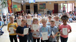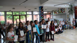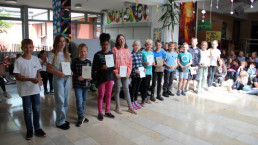 Am letzten Schultag überreichten die Klassenlehrerinnen der Grundschule ihren TeilnehmerInnen mit den besten Leistungen ihre Ehrenurkunden in der Pausenhalle.