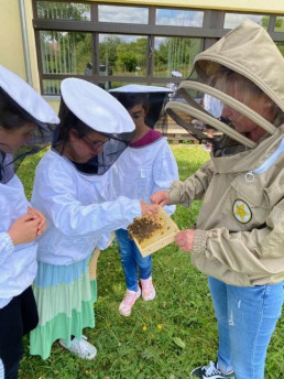 Was summt denn da?Nun haben auch ein Bienenvolk den Weg zu uns auf die Grünflächen um unsere Schule…