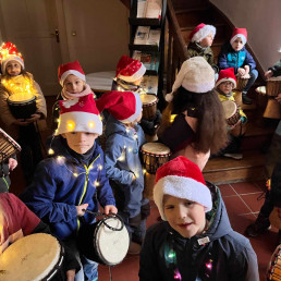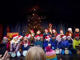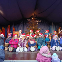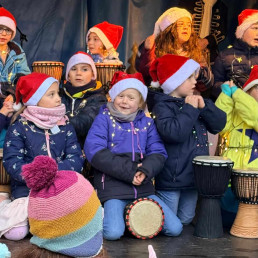 Tapfer trotzten die kleinen Musikerinnen und Musiker der nebligen Kälte, trommelten im Takt und sangen sich direkt in die Herzen der Zuhörer. Spätestens bei der Zugabe war klar: Diese Zwerge lassen niemanden frieren! Gemeinsam mit Moderator und Sänger Ronny Söllner erklang zum Abschluss ein fröhliches „Merry Christmas“, das weit über den Weihnachtsmarkt hinaus zu hören war.