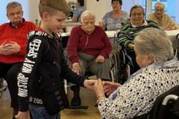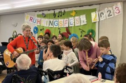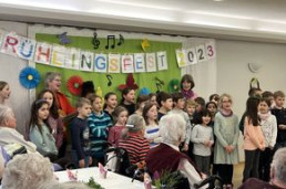 Mit großem Hallo begrüßten die Bewohner des Seniorenheims Rodacher Leben die Kinder der Mittagsbetreuung Wirbelwind der Grund-und Mittelschule Bad Rodach zu ihrem Frühlingsfest. Fröhliche Lieder, auch ein gemeinsam gesungener Kanon, ein Flötenstück, Gedichte und Geschenke entzückte alle Gäste und brachte den gesamten Raum samt Bewohnern und Betreuern zum Strahlen. Lang anhaltender Applaus begleitete die glückstrahlenden Steppkes. Alle freuen sich schon auf ein Wiedersehen zum Sommerfest!