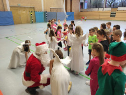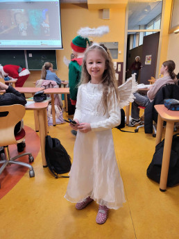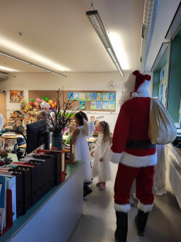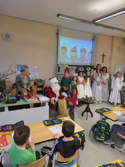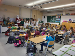 Am 6. Dezember machte uns der Nikolaus eine große Freude! Er besuchte jede Klasse unserer Grund- und Mittelschule! Die Kinder sangen ihm Lieder oder trugen Gedichte vor. Zur Belohnung teilten ein Weihnachtswichtel und fleißige Engelchen Schokolade aus.