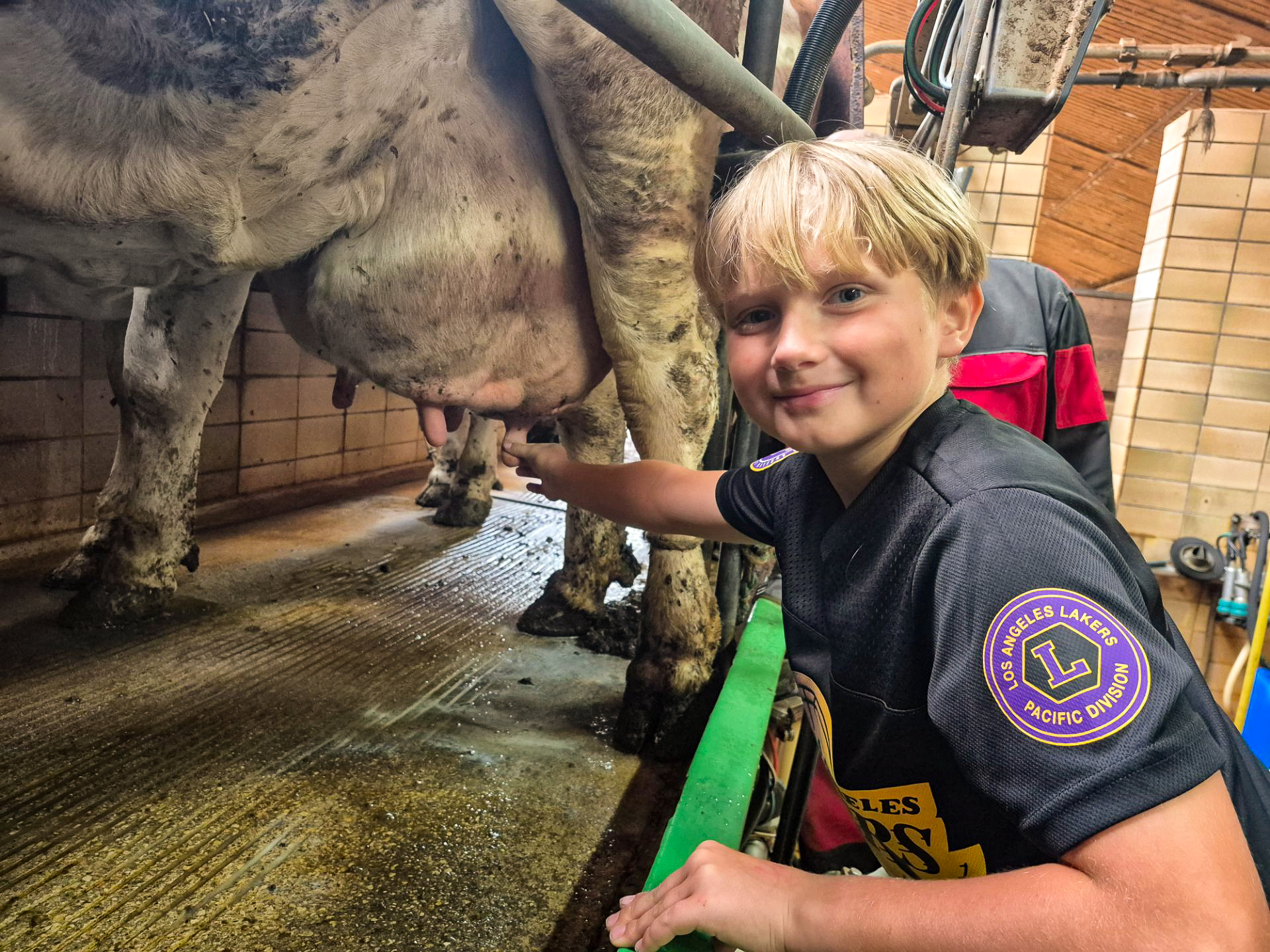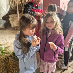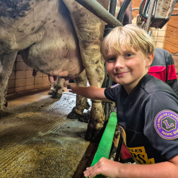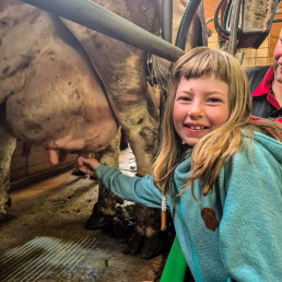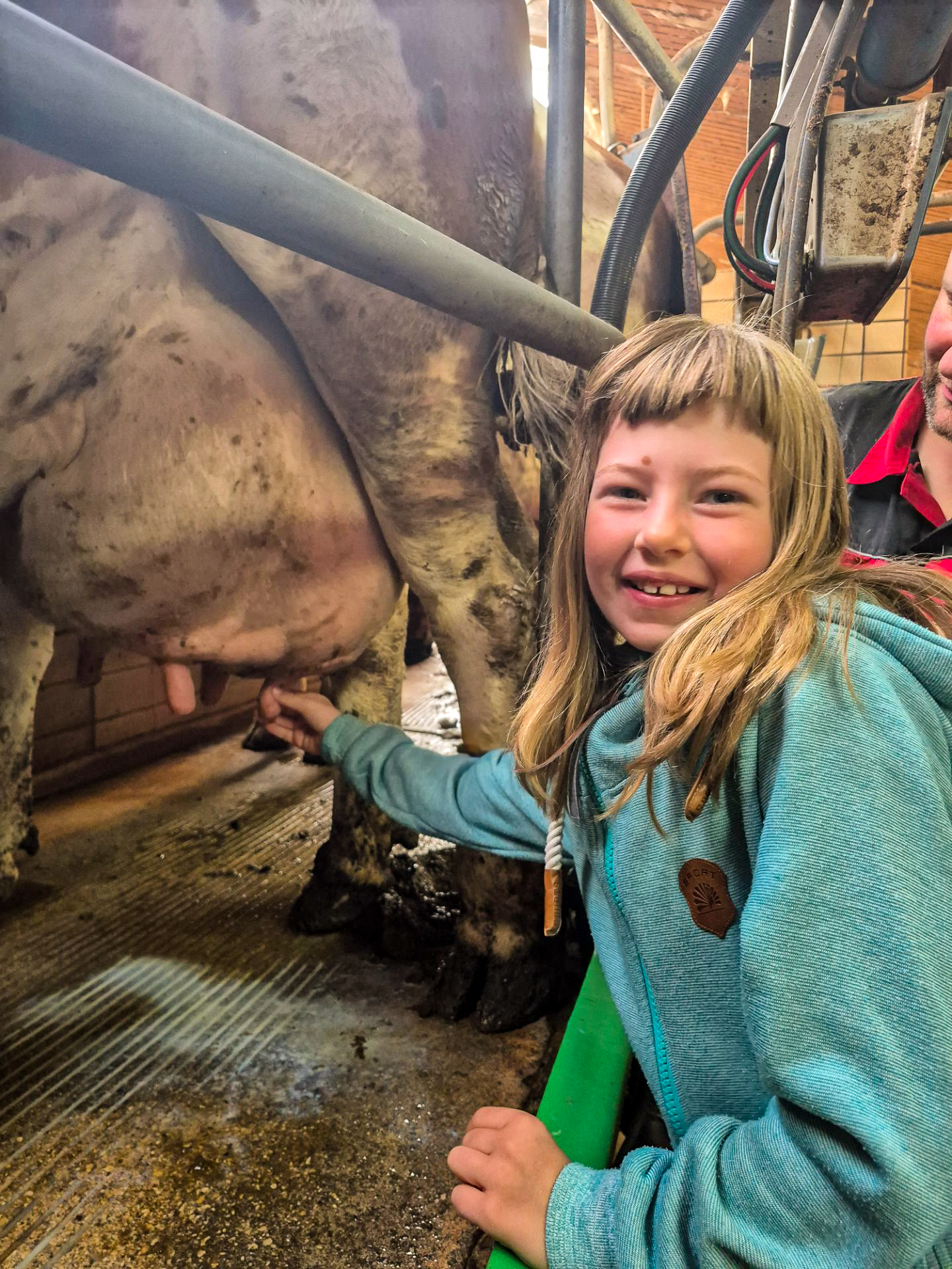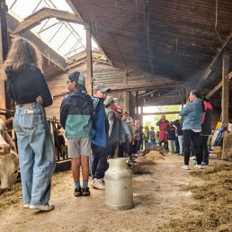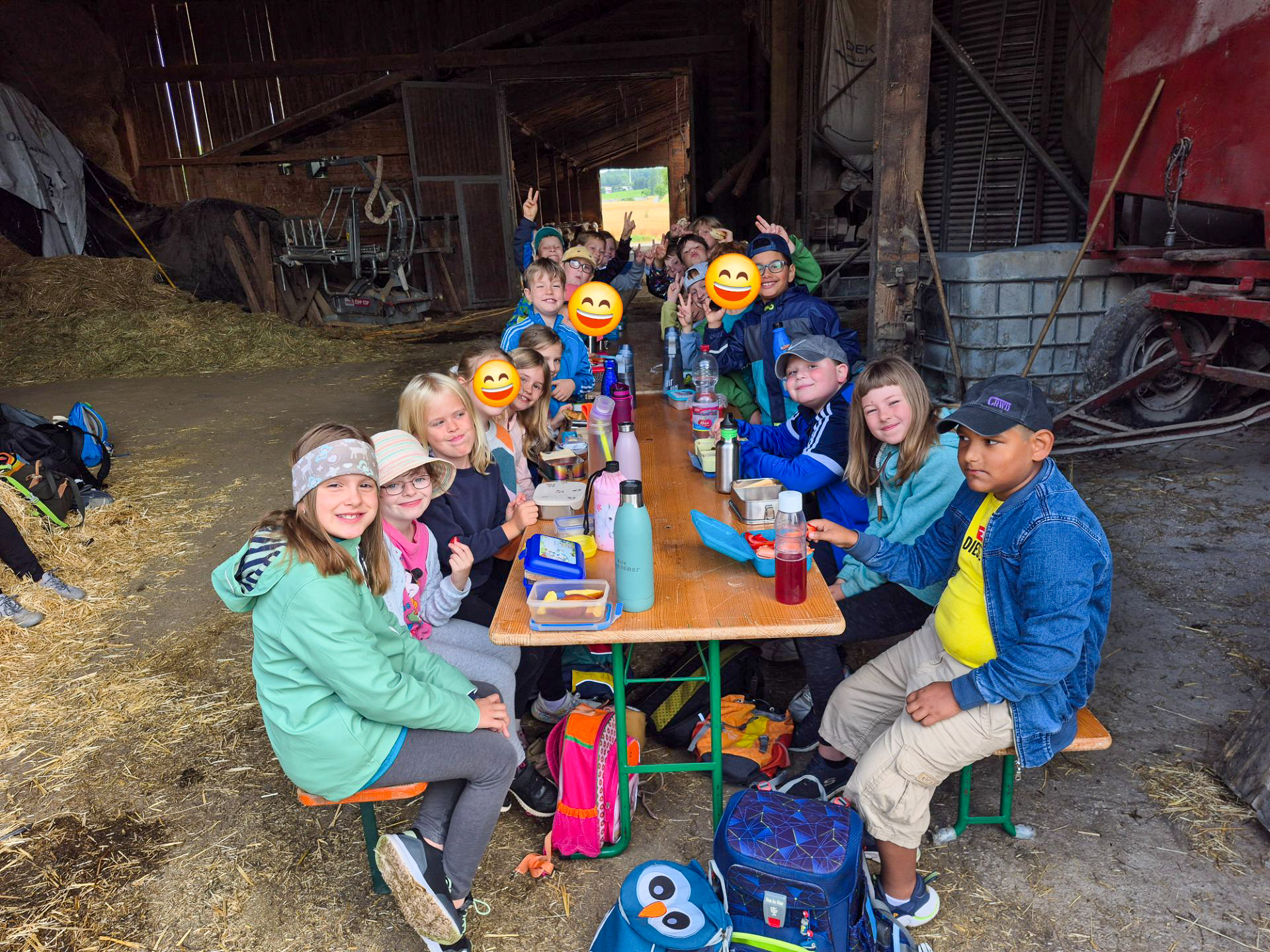Zum krönenden Abschluss der Projektwoche besuchten die Klassen einen Bauernhof. Im Melkstand durften die Kinder selbst Hand anlegen, sie fütterten Kühe und kümmerten sich begeistert um die Kälbchen. So wurde Milchviehhaltung greifbar und erlebbar.