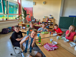 Auch die Ernährungspyramide bot reichlich Gesprächsstoff. Was gehört täglich auf den Teller, und was sollte besser nur selten Platz finden? Mit großem Interesse ordneten die Kinder Lebensmittel ein und setzten sich aktiv mit gesunder Ernährung auseinander.