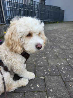 Vielleicht habt ihr mich mittlerweile schon das eine oder andere Mal in der Schule entdeckt? Frauchen und ich hospitieren ab und zu in der 7. Klasse. Das heißt, ich besuche gemeinsam mit Frau Schyma den Unterricht von Frau Schnabel. So kann sich mein Frauchen ganz auf mich konzentrieren und ich kann mich langsam an die Situation in einer Klasse gewöhnen. Da ist nämlich ganz schön viel los – kein Wunder bei über 20 Schülerinnen und Schülern in einem Raum! Die Kinder geben sich daher viel Mühe und wollen extra leise für mich sein. Außerdem füttern sie mich ab und zu und wenn ich möchte, streicheln sie mich zart. Mir gefällt das richtig gut! Trotzdem bin ich nach meinem Besuch in der Schule sehr müde. An die vielen Geräusche und Gerüche muss ich mich einfach noch ein bisschen gewöhnen.