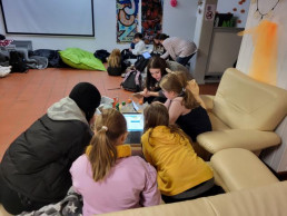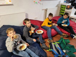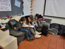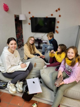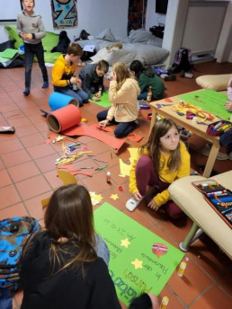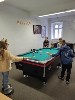 Unser Lager für die nächsten zwei Tage sollte das JUZ am Schlossplatz werden, wo wir nicht nur die Küche und den Billardraum nutzen konnten, sondern auch alle Gruppenecken und -tische zu Arbeitsplätzen umwandeln konnten.
