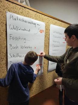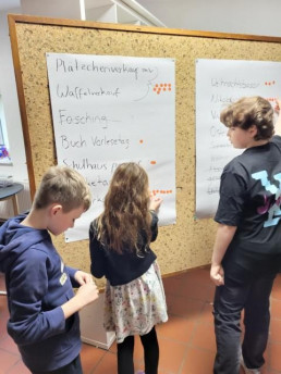 Am 24. und 25.11.2022 trafen sich unsere Klassen- und SchülersprecherInnen um 8 Uhr in der Pausenhalle und warteten gespannt auf ihre Verbindungslehrerin Frau Schyma. Doch diese nahm nicht alleine die Kinder und Jugendlichen in Empfang: auch unsere Sozialpädagogin Stefanie Hofmann und unser Praktikant Valentin Ebert freuten sich mit den Kindern auf 2 abwechslungsreiche, spannende und arbeitsintensive Tage.