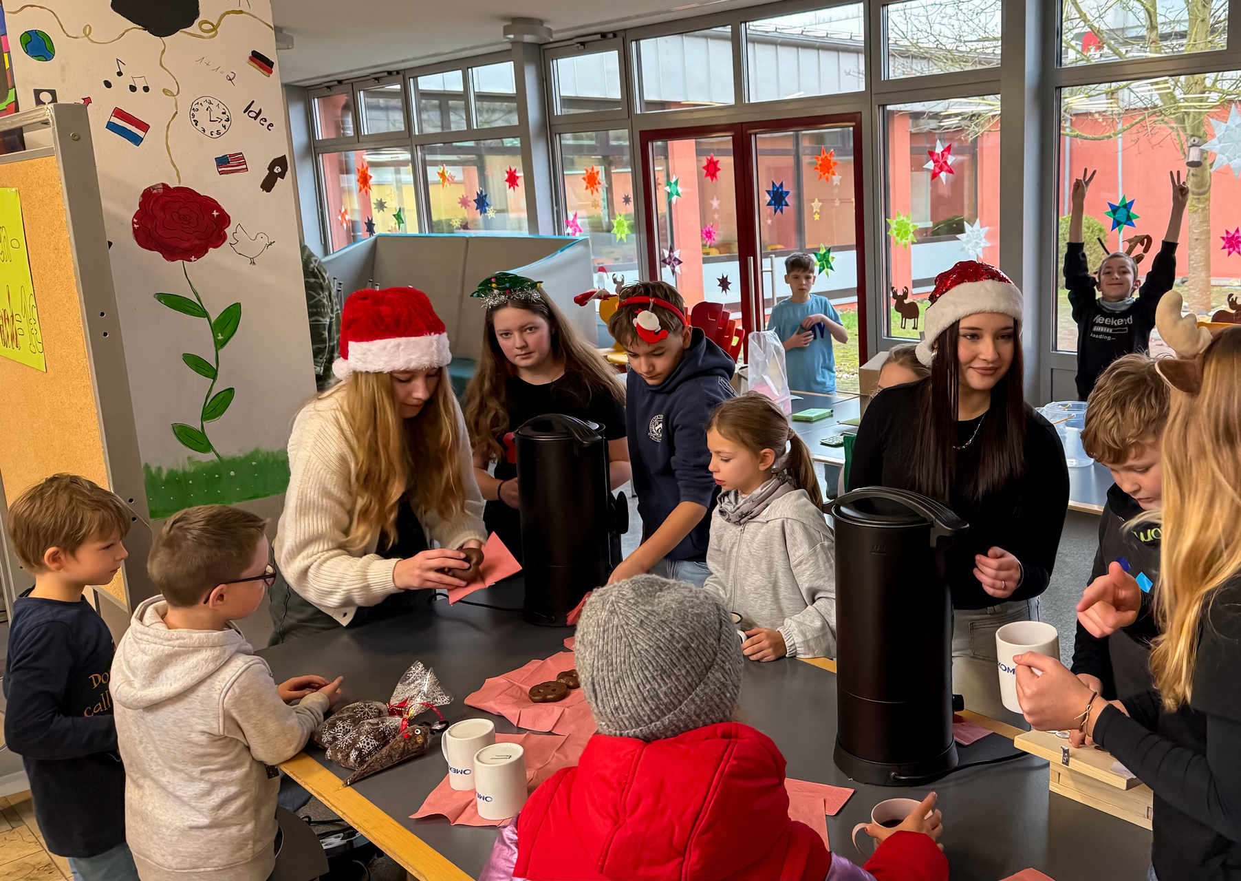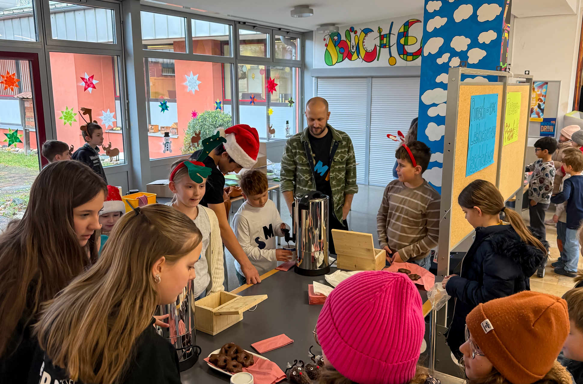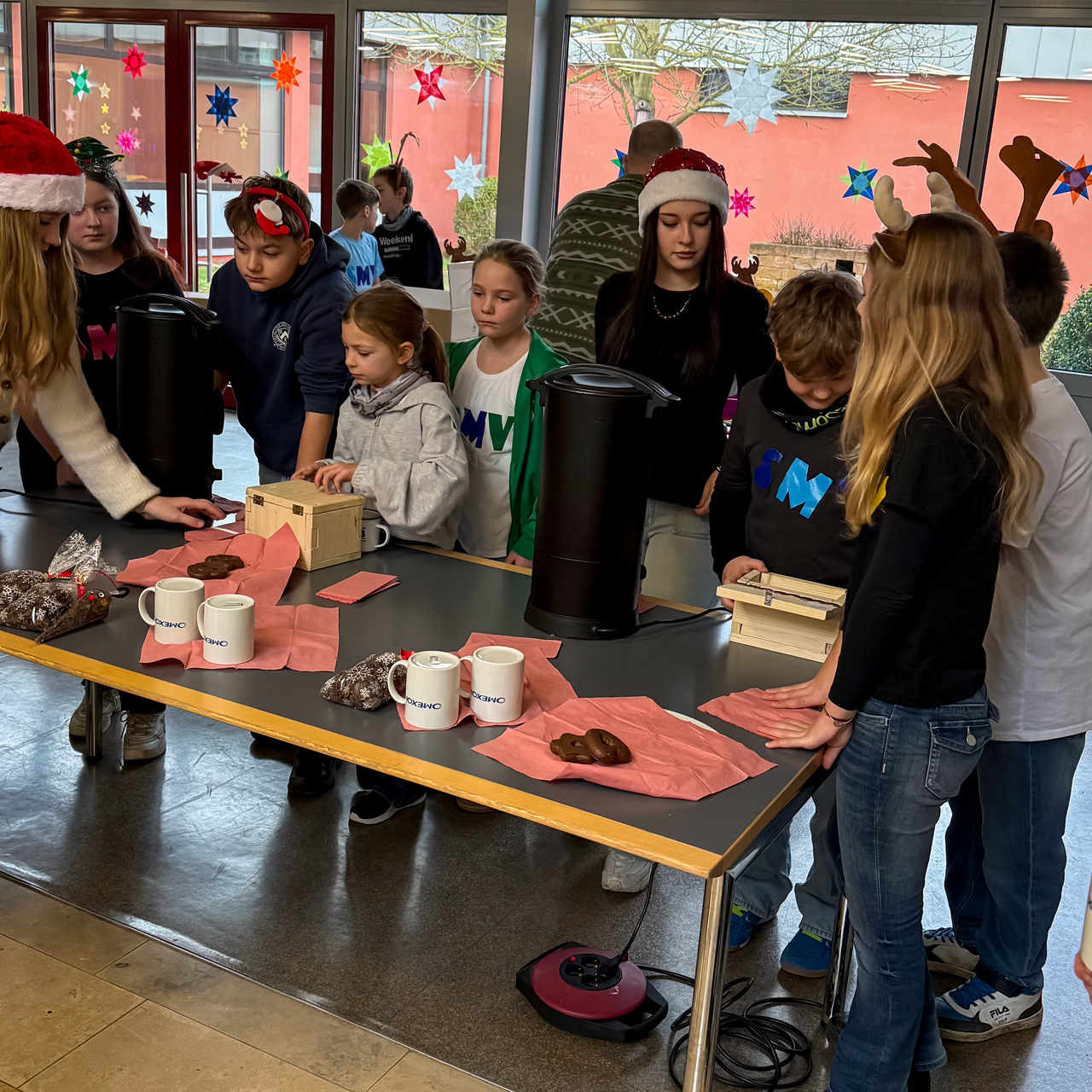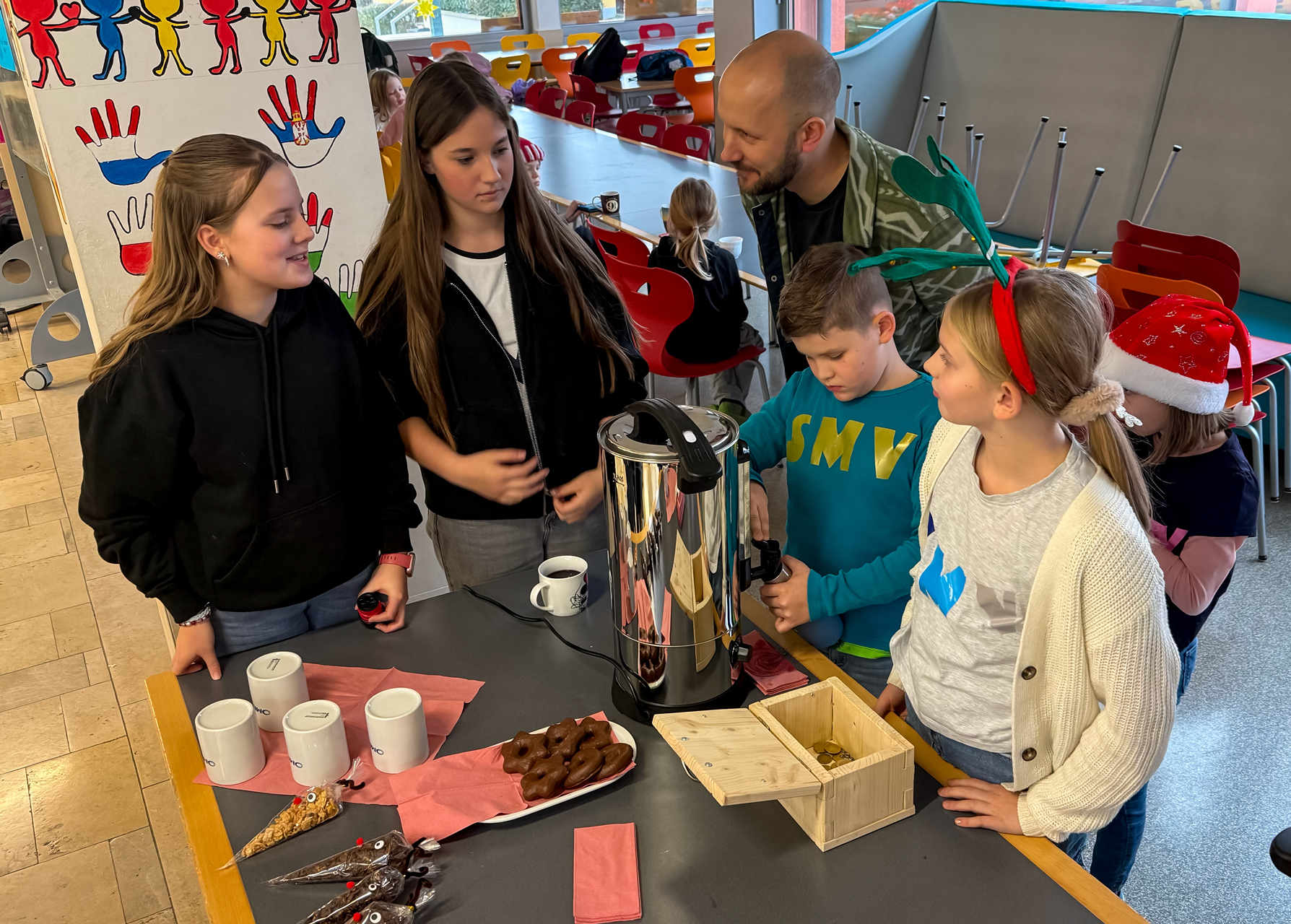 So entstand mitten im Schulalltag ein kleiner, lebendiger Moment der Vorfreude. Für viele war die Aktion der perfekte Auftakt in die bevorstehenden, wohlverdienten Ferien – spätestens jetzt war die Weihnachtsstimmung in der ganzen Schulfamilie angekommen.