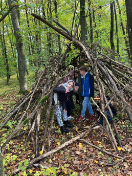 Unterwegs fanden wir eine Vielzahl an Pilzen. Die meisten waren zwar giftig, aber dennoch schön anzusehen. Frau Elsner war sichtlich begeistert und beschrieb uns eindrucksvoll, welche Pilze essbar sind und welche nicht. Der Duft von Pilzen, Holz und Wald begleitete uns während der eineinhalbstündigen Wanderung bis zum Wasserspielplatz in Neuses. Dort machten wir eine längere Rast und konnten uns nach Herzenslust austoben. Wir behaupten mal, dies war einer der schönsten Tage seit Schulbeginn. Müde, aber glücklich wurden wir vom Schienenersatzverkehrsbus wieder nach Bad Rodach zurückgebracht.
