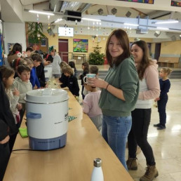 Die Aktion kam bei unseren Mitschülerinnen und Mitschülern so gut an, dass binnen kürzester Zeit die Plätzchen ausverkauft waren und auch der Kinderpunsch nicht ganz bis zum Ende der Pause ausreichte.
