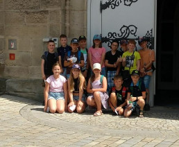 Auf dem Weg zur Reithalle ließen sich die Kinder ein paar Sehenswürdigkeiten und mittelalterliche Besonderheiten der Stadt Coburg erklären und schleckten bei sommerlichen Temperaturen ein Eis.