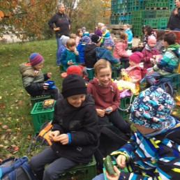 Anders als sonst üblich, kamen am Donnerstag, den 13. Oktober 2022 die Kinder der Klasse 1a und 1b mit den Taschen voller Äpfel zur Schule. Ein ganz besonderer Wandertag stand im Stundenplan.
